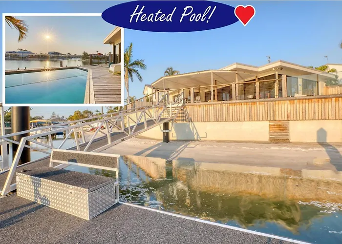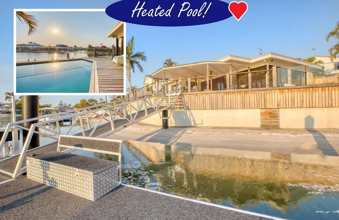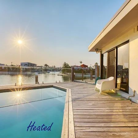 Deze 3-slaapkamer Sunset Waters - Big Waterfront - Heated Pool - Point Position - 10M Pontoon - Views - 90Day Stays ligt op ongeveer 25 minuten wandelafstand van Ripley's Believe It or Not en nodigt gasten uit om te ontspannen in een bubbelbad. Deze villa heeft een patio en ligt op 2 km afstand van de Dracula's Cabaret Restaurant Gold Coast.